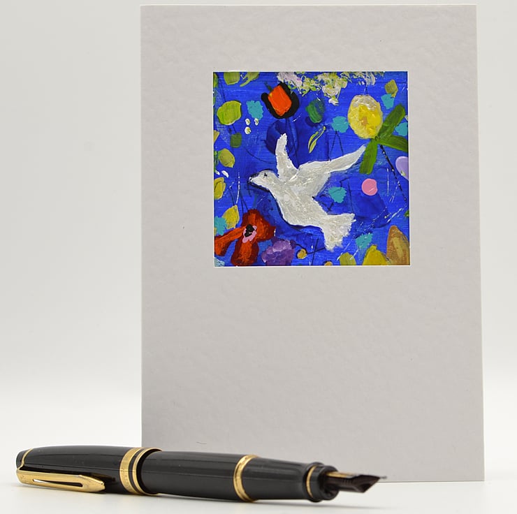 This is an original, one-off painting that has been made into a card/notelet. It would be an ideal gift for anyone who wants to start to collect miniature artworks. It would be a special treat to receive this original work. The size of the card/notelet is A6 (6 inches x 4 inches). The size of the painting is, 2.5 inches x 2.5 inches. The artwork is varnished and the card is signed by the artist on the back. This is a great collectible at an affordable price.