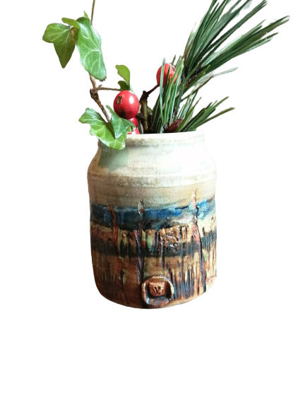 These Bud vases have been designed as if a free standing, three dimensional painting, inspired by a grassy stretch of the local landscape where I stay, evoking a feeling or memory of a walk along the Scottish coastline.