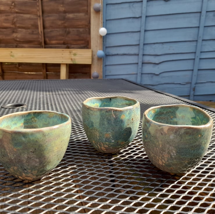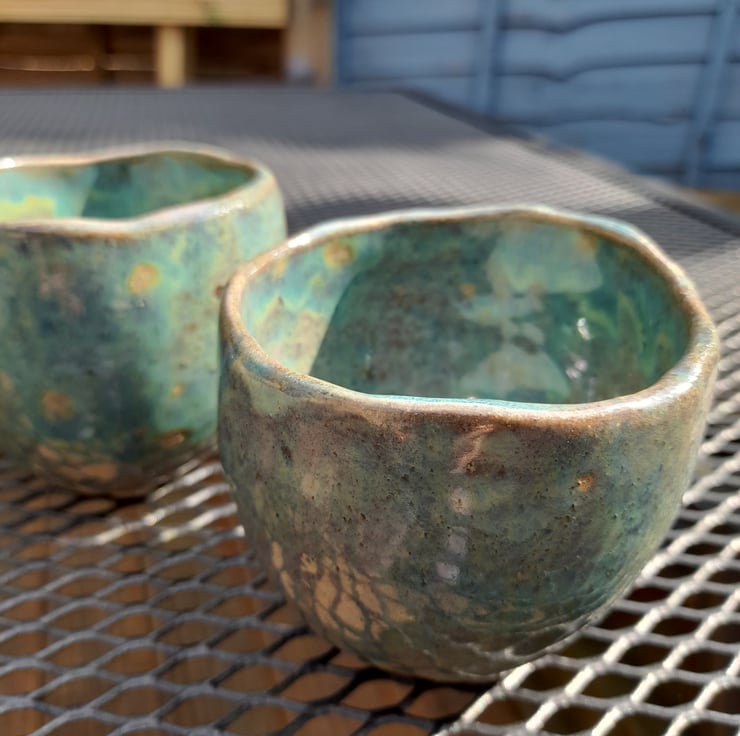 Handmade ceramic medium glazed pot, finished in blue green Auroura glaze. Each pit is different in shape & size, stoneware clay used.