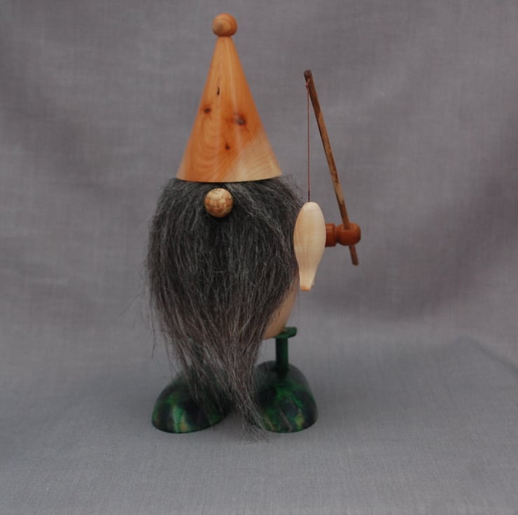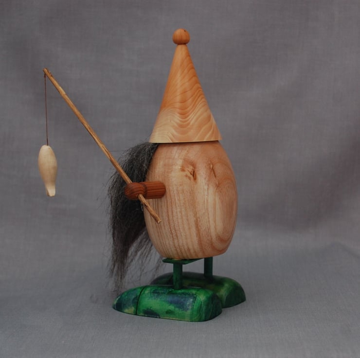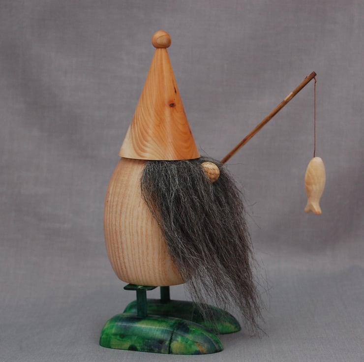 Gnomes do things differently for sure. Here is a relaxed fellow, fish on the line, standing proudly on his version of a paddle board. Randal has created this Swedish tomte, gnome, gonk, call him what you will, to bring smiles to all who see him.
