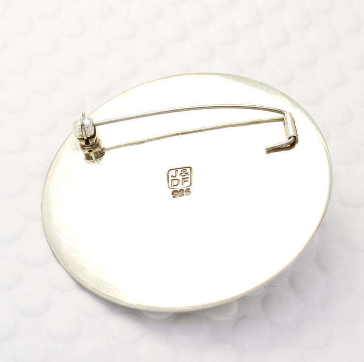 This handmade brooch has been designed by us and made in our workshop in Yorkshire. It features a lovely 10mm White moonstone and is made from sterling silver. The brooch is flat in shape and measures 45mm in diameter. We wanted to use the lovely phrase 'Love You To The Moon And Back' in an abstract way so that it isn't obvious at first glance what is written on the brooch.