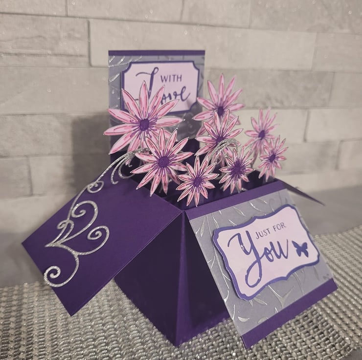 A beautiful unique handmade pop up box perfect to gift as an alternative to a standard card.