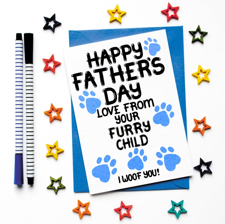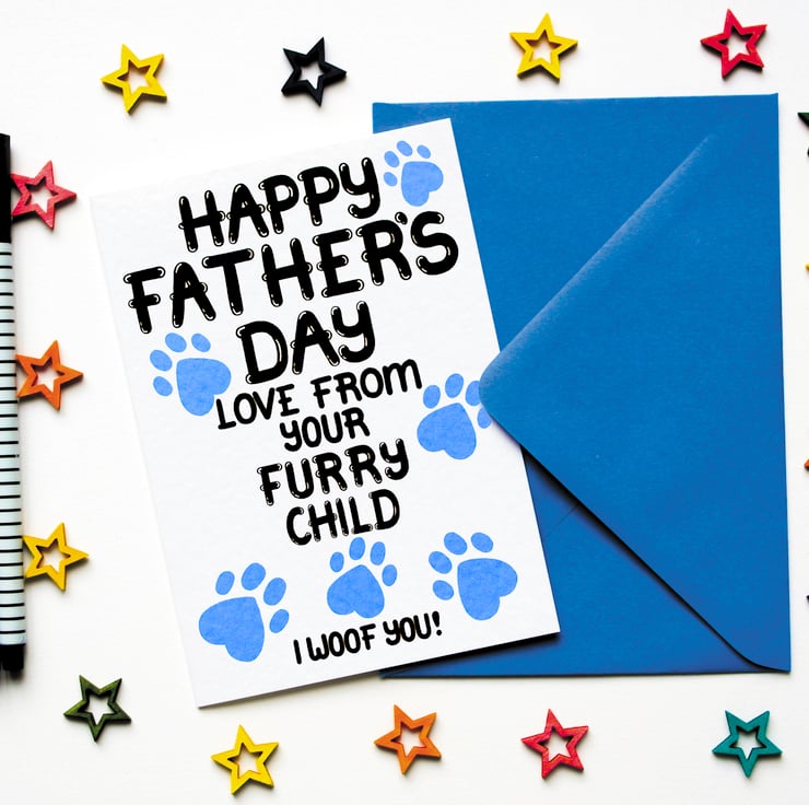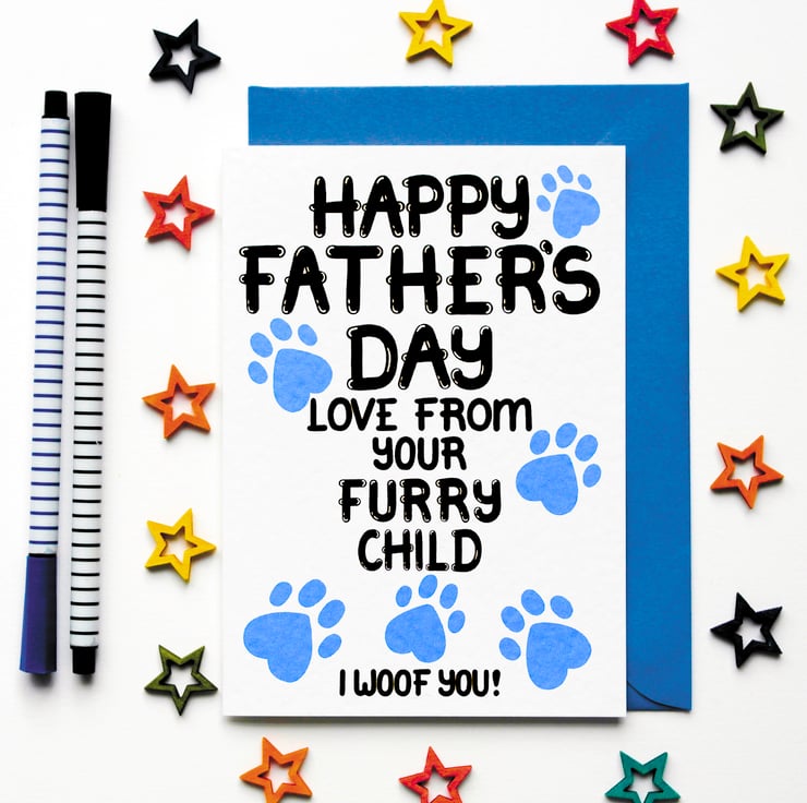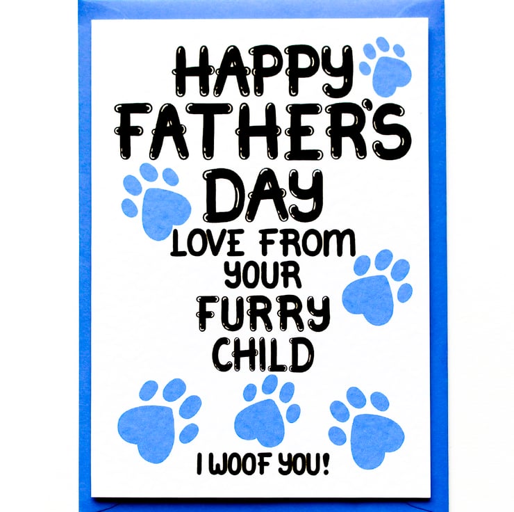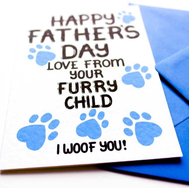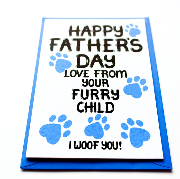 Greeting on front: HAPPY FATHER'S DAY LOVE FROM YOUR FURRY CHILD I WOOF YOU!