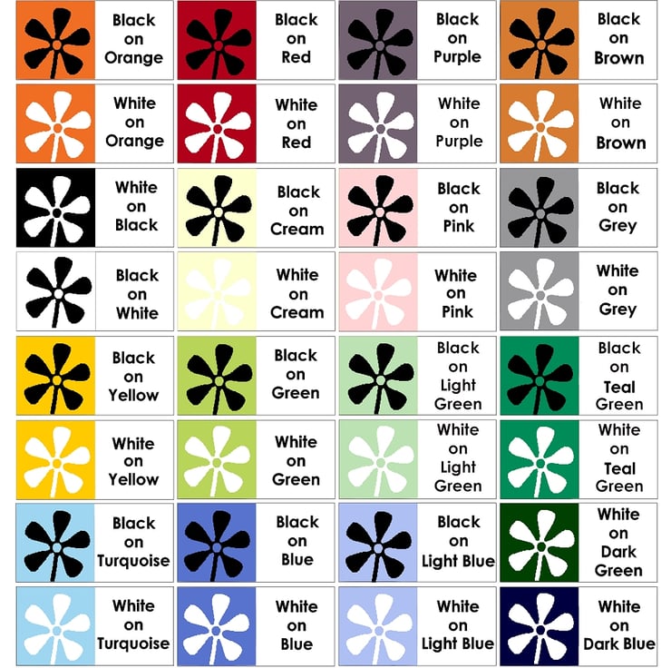 Please choose the colour combination you would like from the drop-down box, using the chart provided.