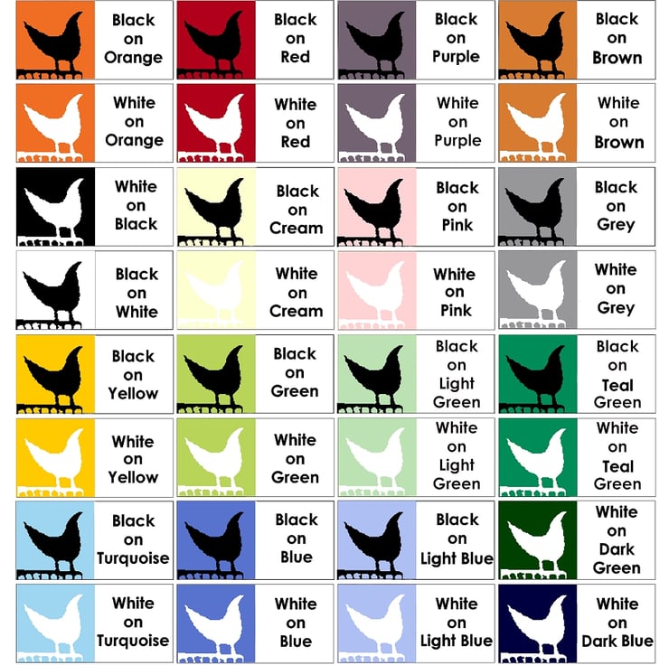 Please choose the colour combination you would like from the drop-down box, using the chart provided.