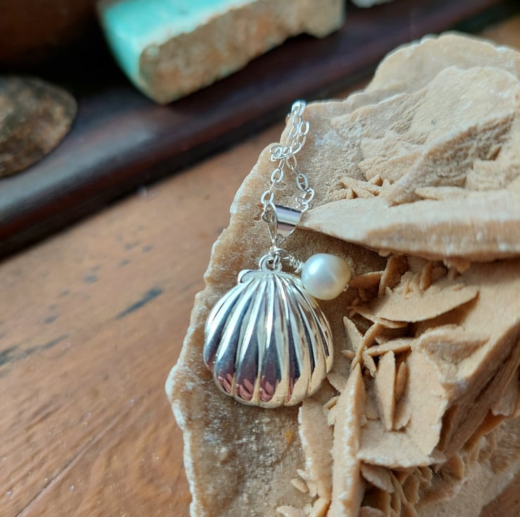 This is a great gift for anyone who loves the seaside or the beach. Pearl is the Birthstone for June too. This cute sterling silver shell has a 6mm cultured pearl to reflect the creation of pearls. It dangles 2.7cm from a chain, which comes in a choice of 16,18 or 20 inches in length. There is also a matching bracelet listed in my shop.