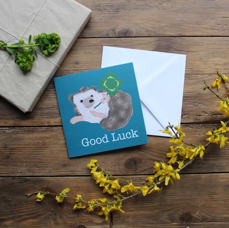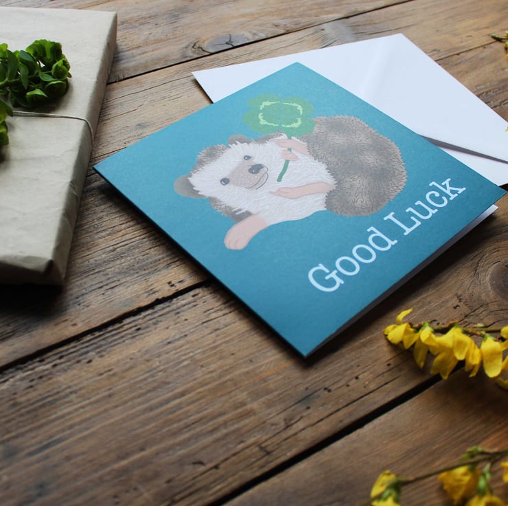 want to wish some one good luck? Then why not send them a little hedgehog card to wish them luck