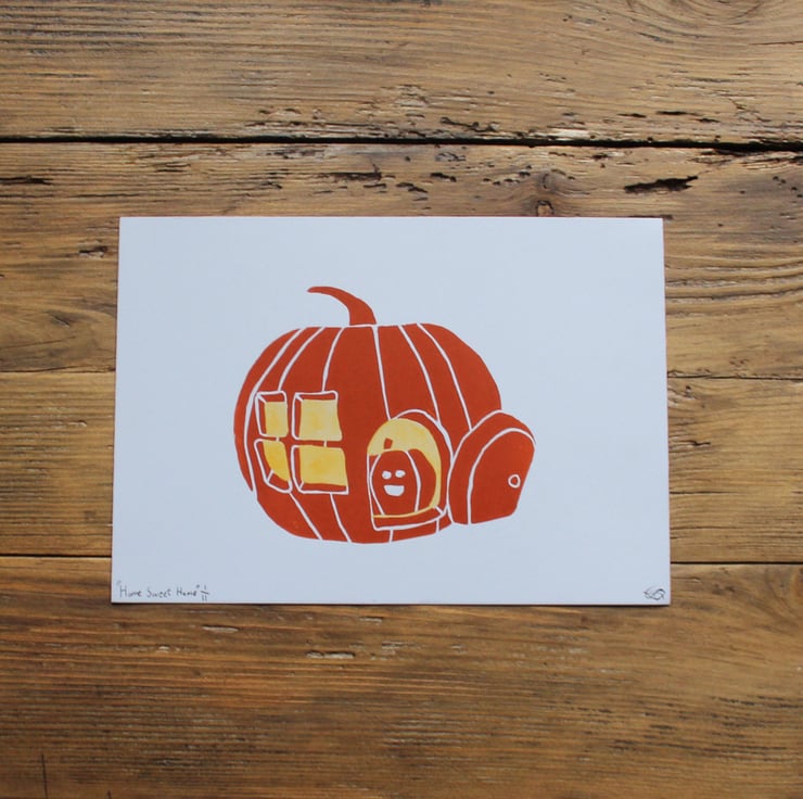 This is a high-quality original Lino print artwork with yellow watercolour detailing.