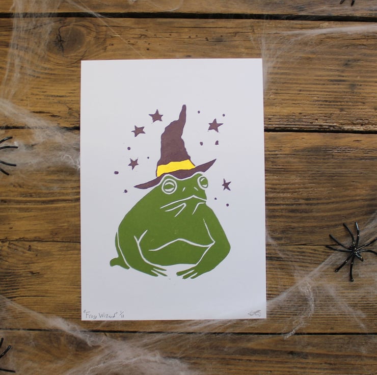 The image is a fun illustration of a frog with a wizard as part of my 2020 Halloween collection.