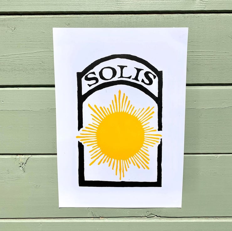 The image is a fun illustration inspired by Vintage sun drawings with the word for sun in Latin.