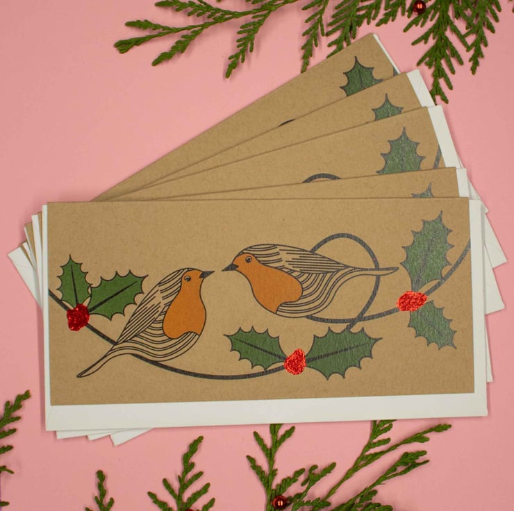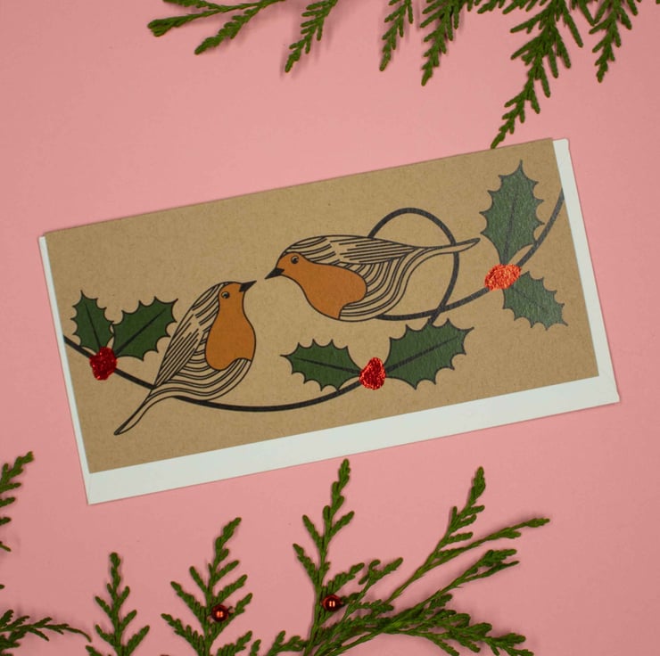 Celebrate Christmas in style with these gorgeous Pair of robins perched on a holly branch