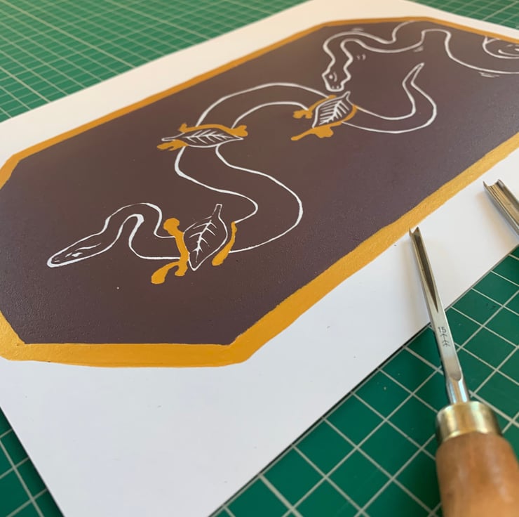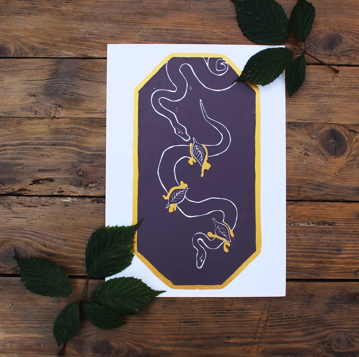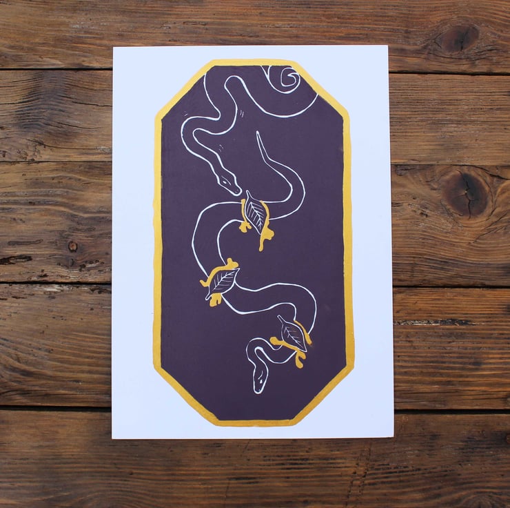 This is a high-quality original Linoprint artwork with gold watercolour detailing.