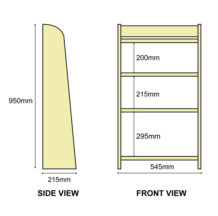 This low bookcase will make an ideal storage place for rooms where space is tight. The tapering side profile means it can be incorporated into any space without appearing bulky, making it ideal for a home office or child's bedroom. The shelves are progressively deeper from top to bottom to accommodate a range of books. All you have to decide is where to put it?.
