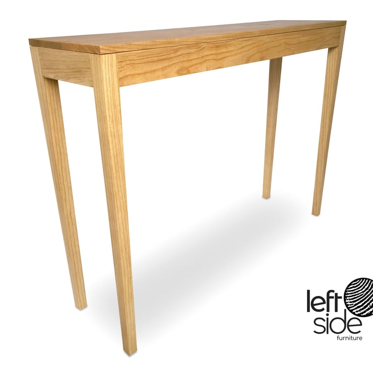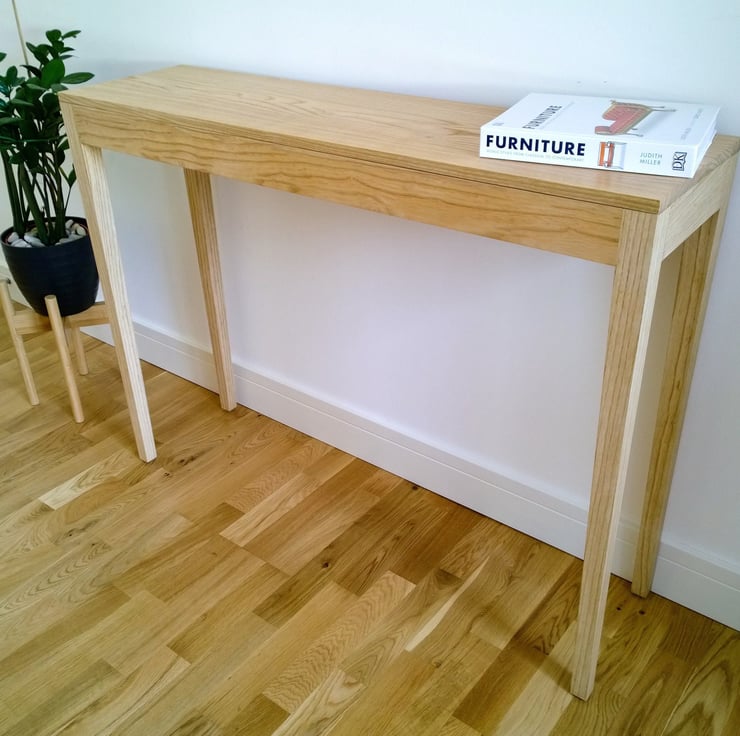 Long tapering legs give this Ash Console Table a slender appearance. Handmade to order by me in my workshop using Mortise and Tenon joinery and finished with a light coat of natural resin shellac prior to a traditional furniture wax finish. The shellac gently seals the wood allowing the wax to work its magic, leaving a subtle lustre which enhances the grain and protects the surface.