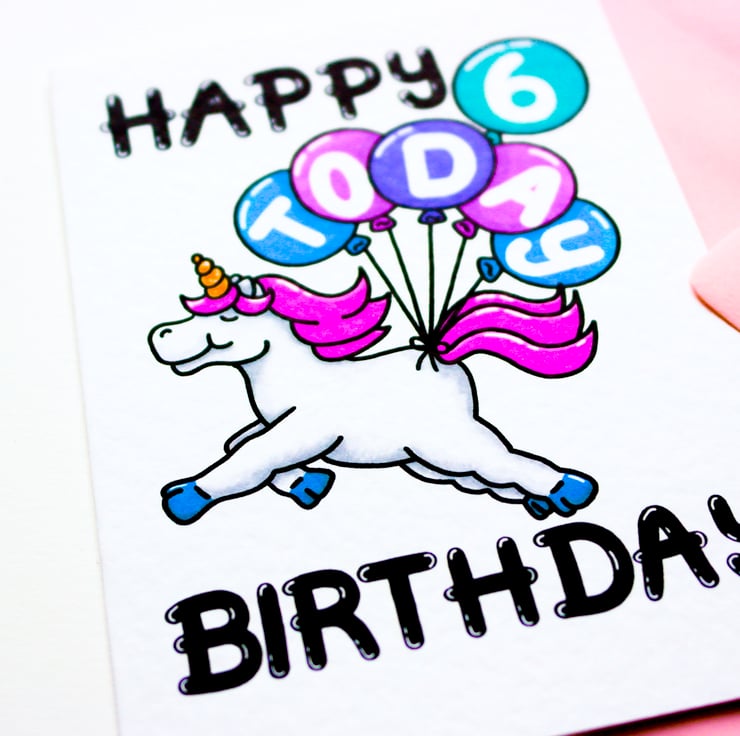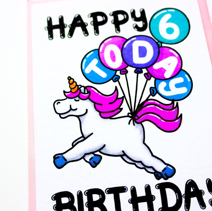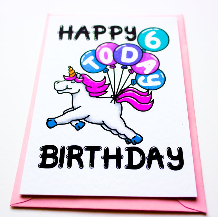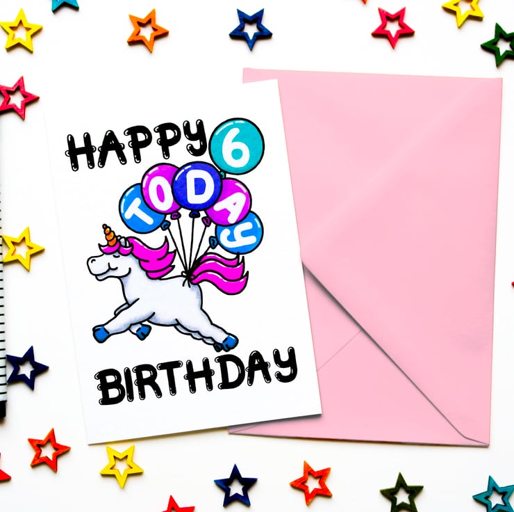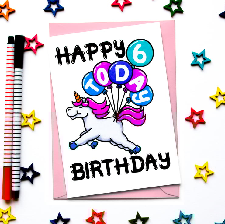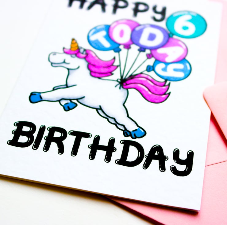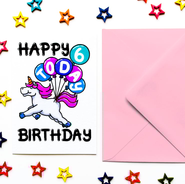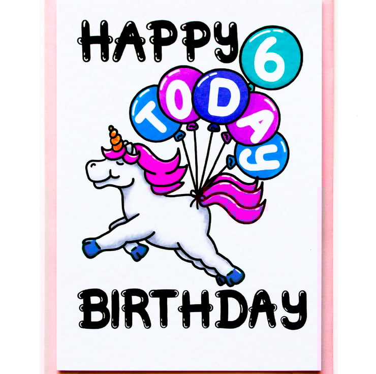 Greeting on front: HAPPY BIRTHDAY 6 TODAY (On Balloons)