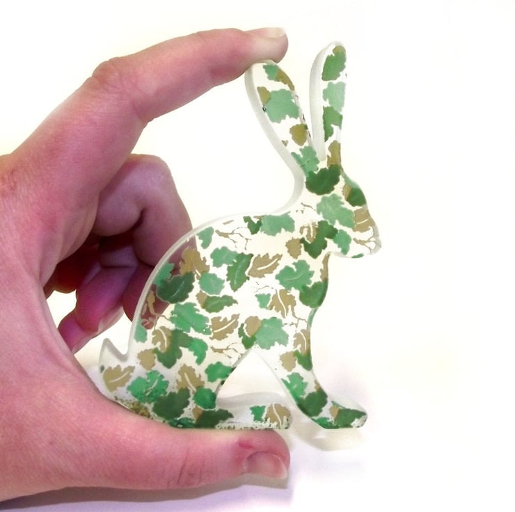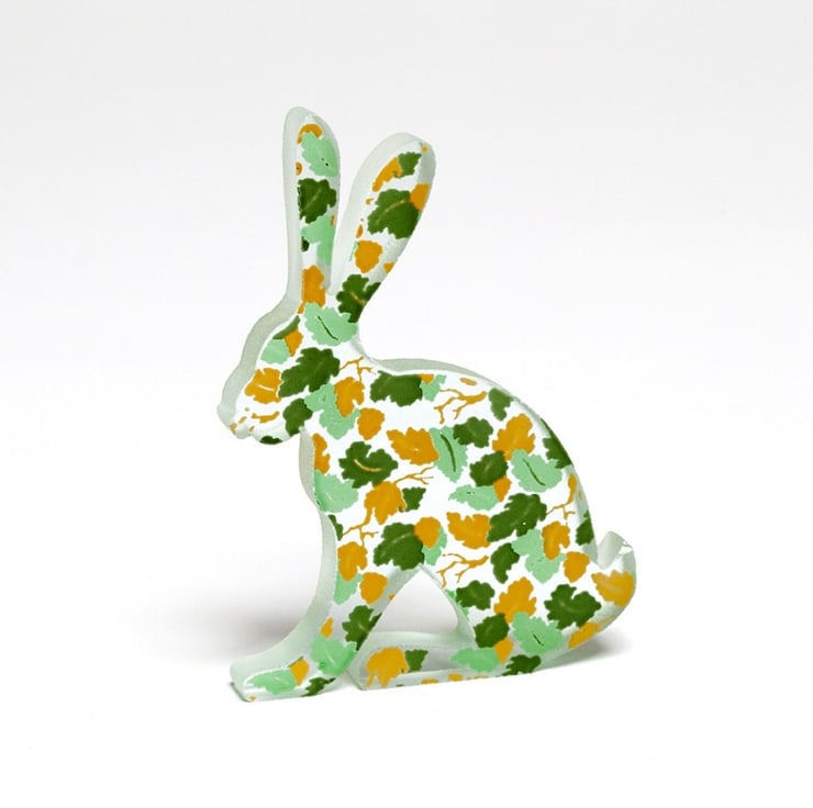 This little hare is made from one piece of chunky 10mm thick clear float glass that has been cut to shape using a water jet cutting machine.