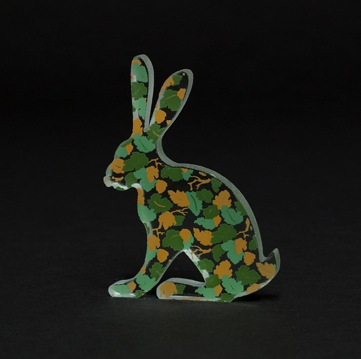 My little hares are also available as greetings cards, enamel pins and glass brooches, stud earrings, pendants or cufflinks in my shop collections.