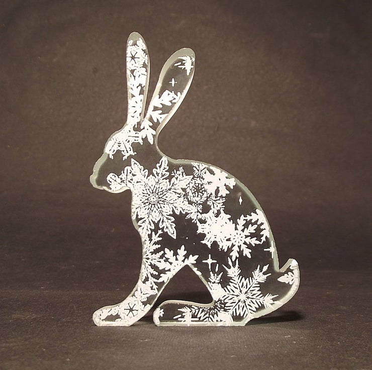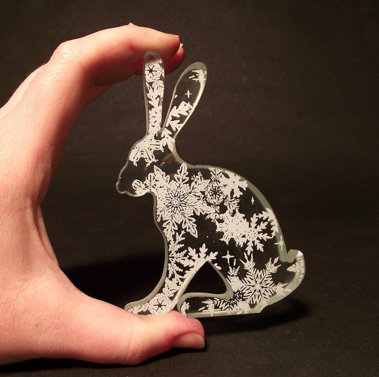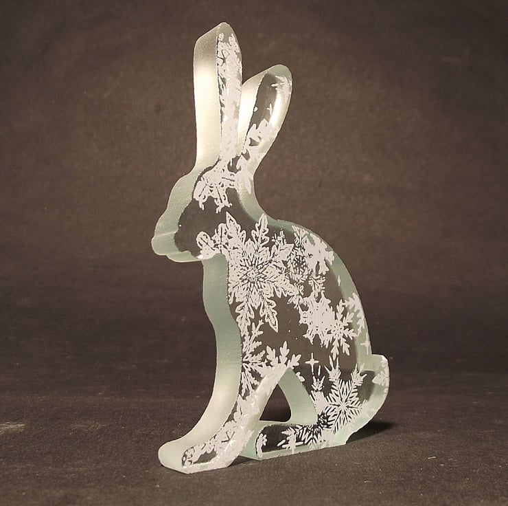 This little hare is made from one piece of chunky 10mm thick clear float glass that has been cut to shape using a water jet cutting machine.