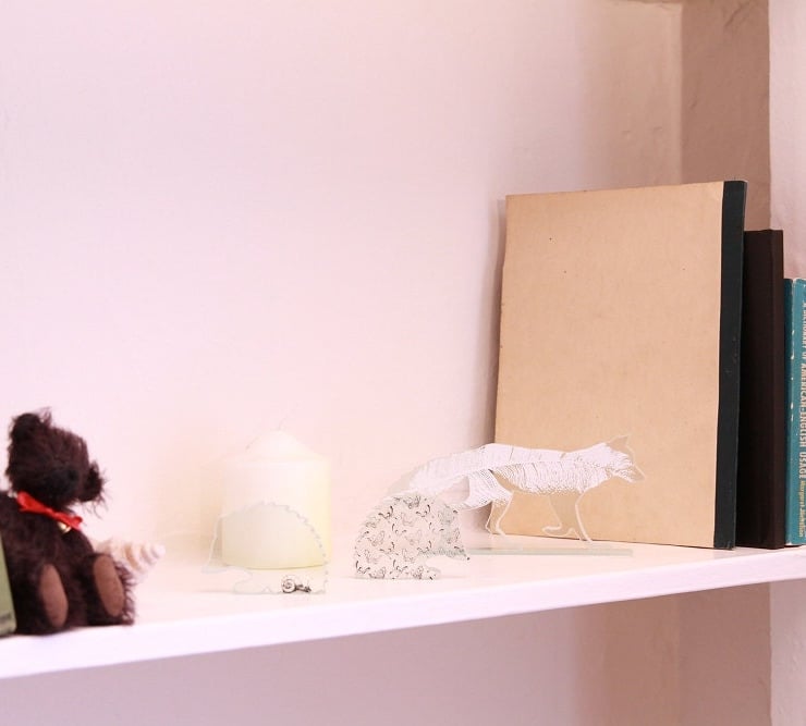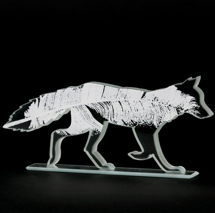 This little fox is made from one piece of chunky 10mm thick clear float glass that has been cut to shape using a water jet cutting machine.
