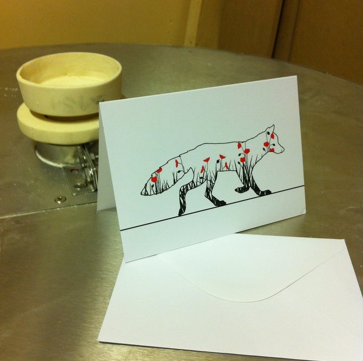 This Red Poppy Fox card is made from thick 340gsm, sustainably sourced paper stock. With a light satin coating on the outside, the inside is blank and left uncoated, making it easier for you to write your own message.