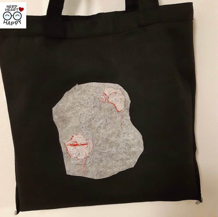 Made with a cotton mini tote bag and rayon embroidery thread. Vegan - no animal products are used.