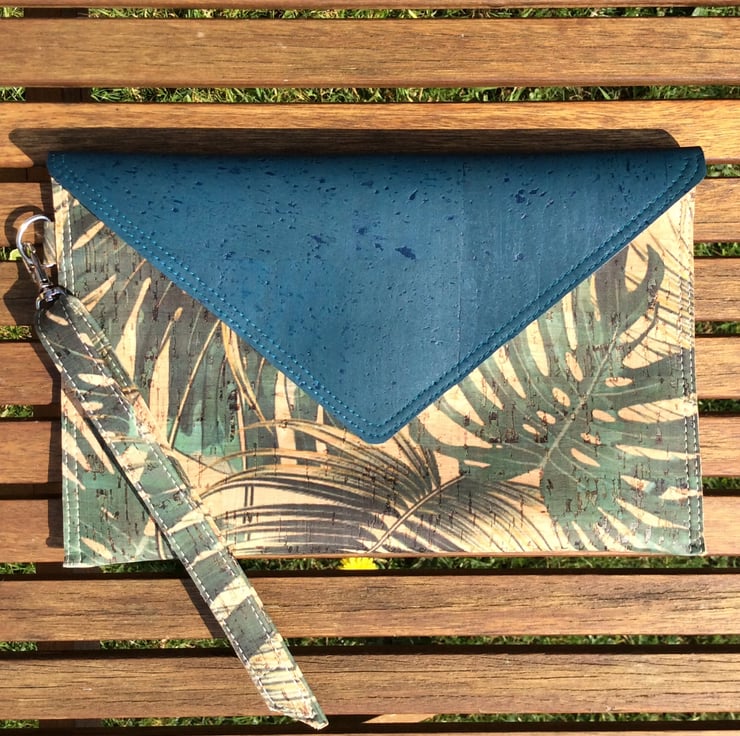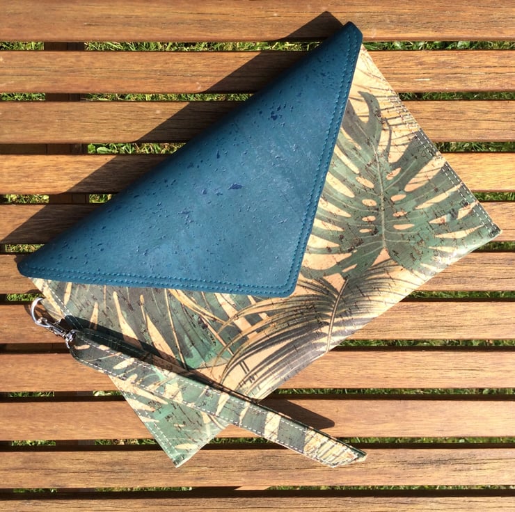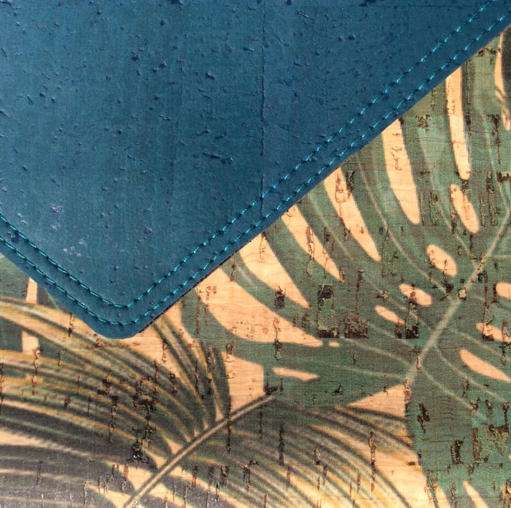 I love sewing with cork fabric. It is lightweight and has a soft velvety texture making it ideal for this clutch bag. Being durable and water resistant it is also practical. The natural grain and colour variation of this fabric makes each item unique.