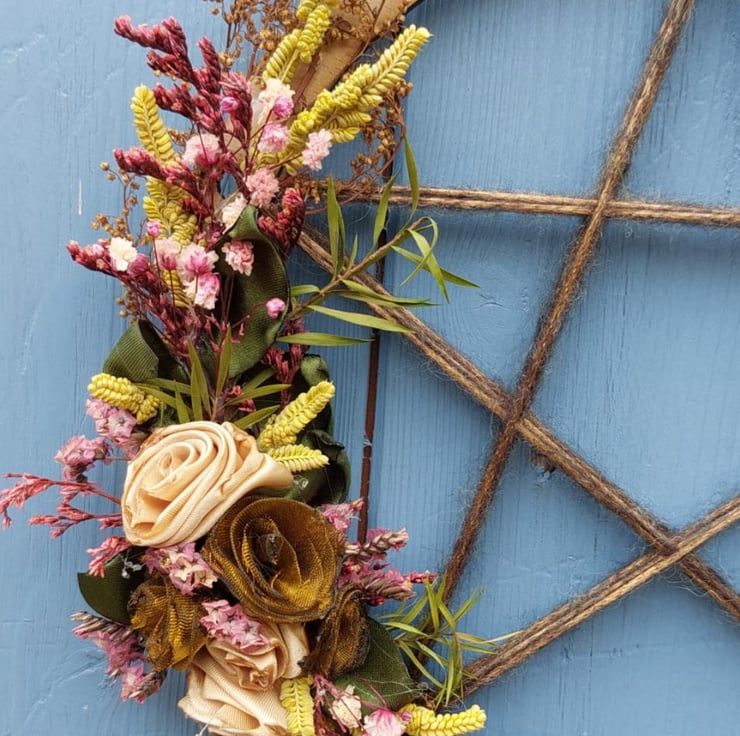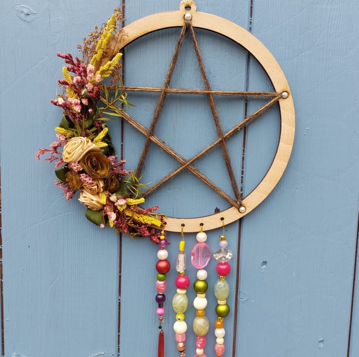 Stunning Pentacle wall art with dried & handmade fabric flowers.