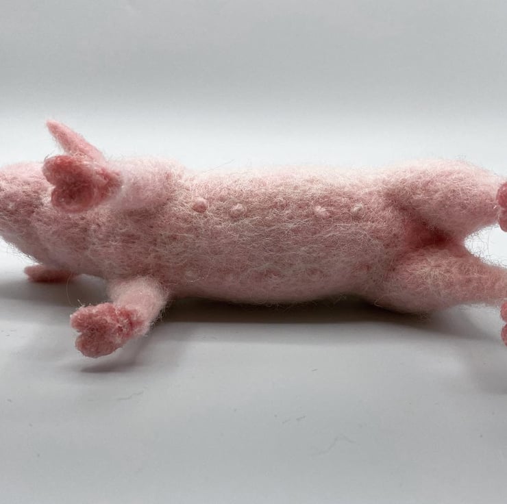 Handmade needle felted pig sculpture. Lovingly made from Corriedale wool around a wire frame. She is 20 cm long and 11 cm tall and would make a perfect gift for an animal lover.