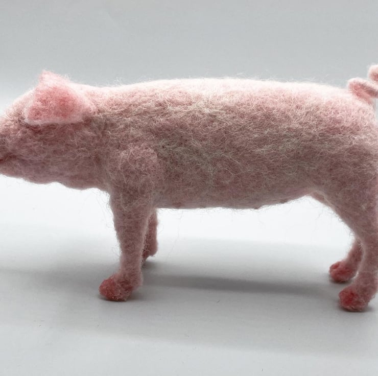 This lovely pig sculpture is made from Corriedale wool felted around a wire armature (skeleton). She is completely handcrafted and would make the perfect gift for any pig lovers!