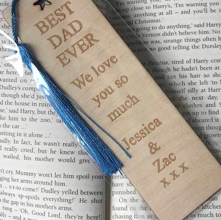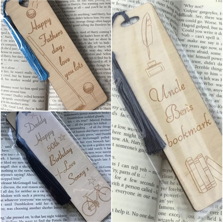 Personalised laser engraved wooden bookmark great for Father’s Day, male gift.