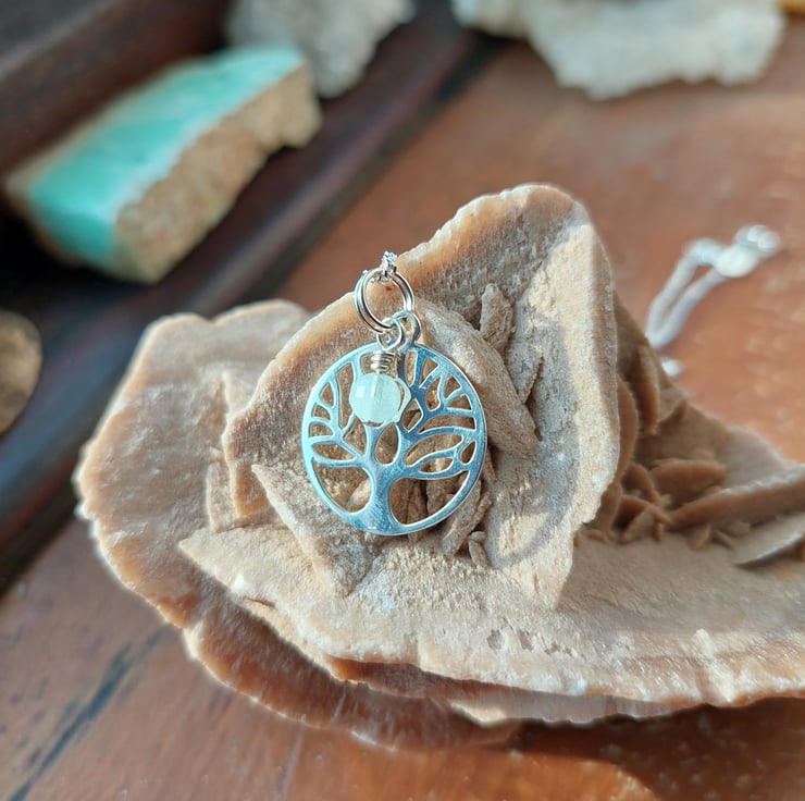 This is a sterling silver tree and a facetted aquamarine and makes a lovely gift. Up to 2 other birthstones can be added to reflect family members, such as children. The tree hangs 2.5cm from a chain, which comes in a choice of 16,18 or 20 inches in length. There are matching earrings also listed.