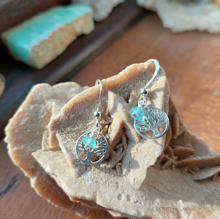This is a sterling silver tree and a facetted aquamarine and makes a lovely gift. The tree hangs 1.2cm from a sterling silver ear hook. There is a matching necklace also listed.