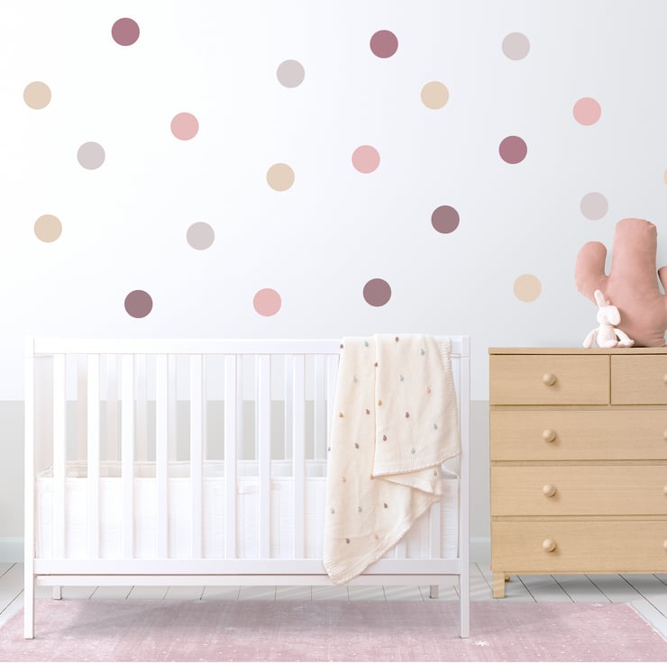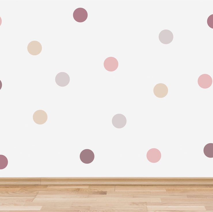 Pack of 40 dusky pink / muted pink tones polka dot wall stickers