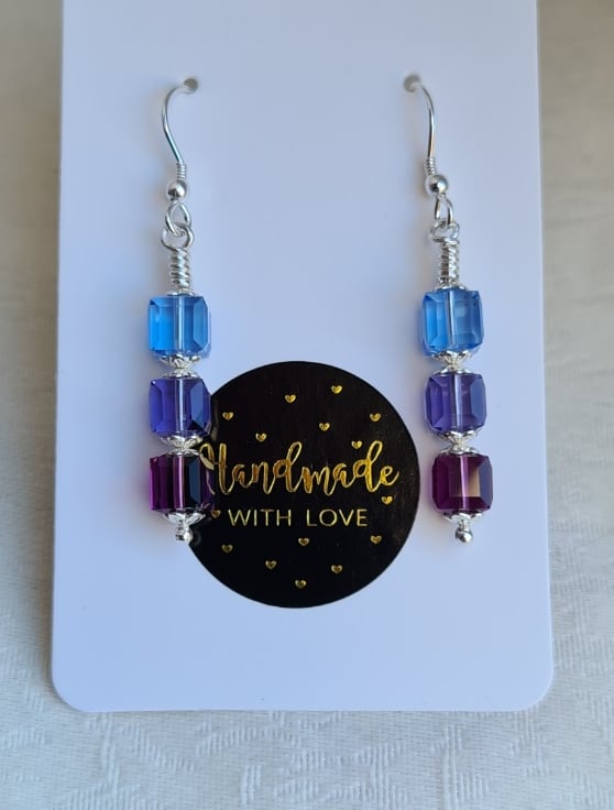 Gorgeous Crystal Cubes Earrings - Blue/Purples - Sterling Silver.