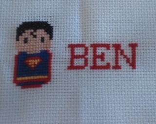 Personalised Superhero Cross Stitch. Your name plus 3 characters of your choice.