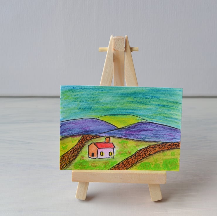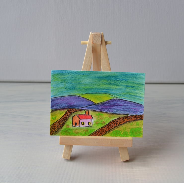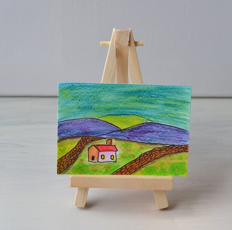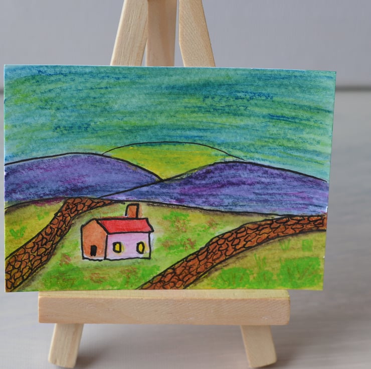 Aceo watercolour and ink painting .Painted on quality watercolour card. Painted using quality inktense watercolour paints.. Size is 2.5" x3.5" . I can put it into an ivory mount for £1.50. - Keep out of direct sunlight due to fading and away from water.I am adding new paintings each week.