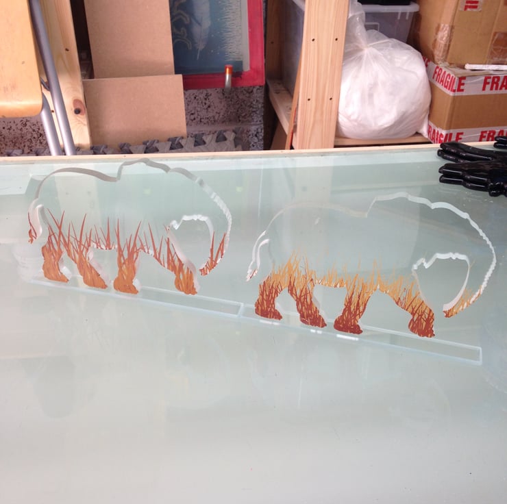 To play with this concept I chose to capture the elephants marching through savannah grasses with two different brown enamels. However, the grass also looks great in greens or other colour combinations too. It also casts a great shadow when light hits the clear glass on a sunny day.
