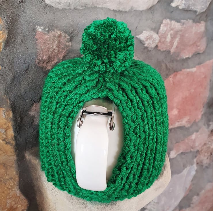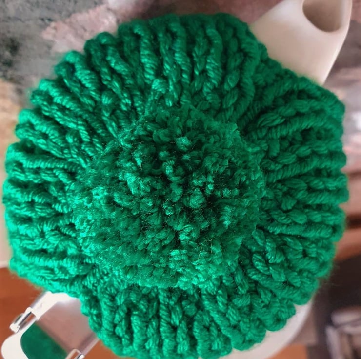 100% Acrylic, knitted using soft, chunky weight yarn in 2 x 2 rib, making this tea cosy both thick and stretchy.