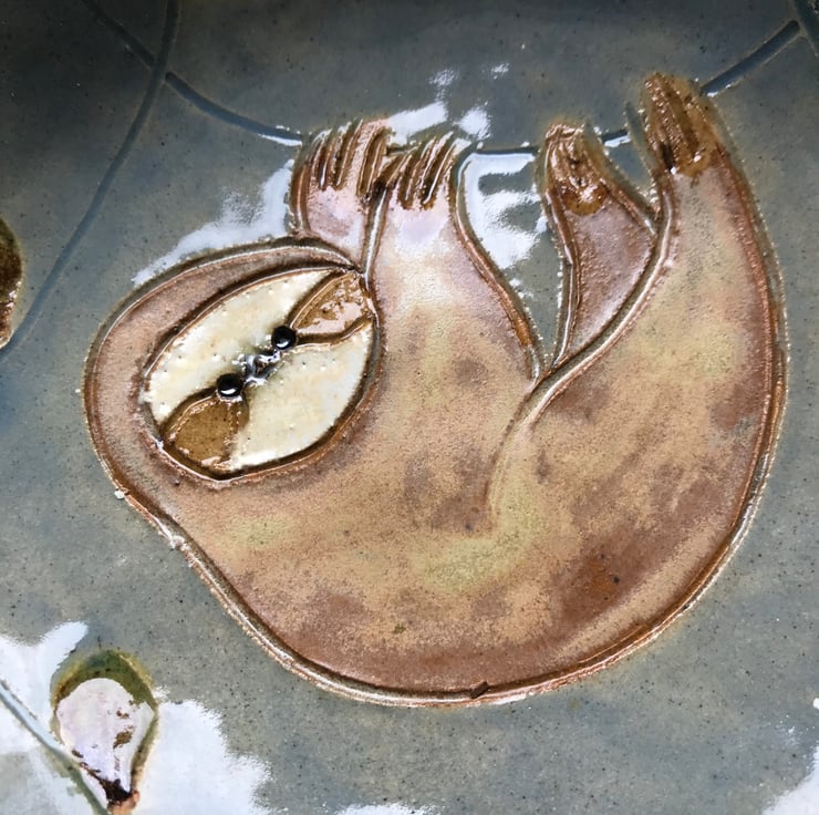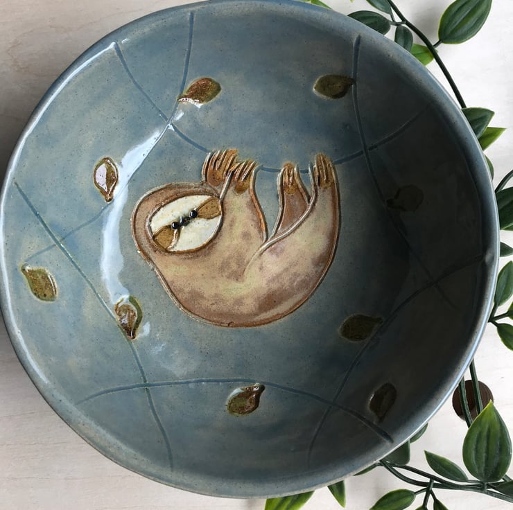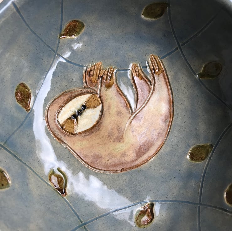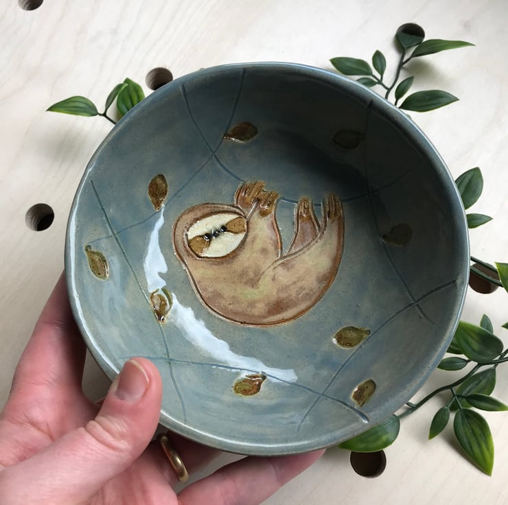 I was asked to make a sloth bowl by a customer, this is a variation on that bowl. Sloths are such enigmatic creatures I couldn’t resist making some more. This bowl is perfect for desserts and nibbles. Or you could use it as a jewellery dish.