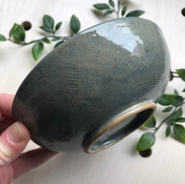 Hand could stoneware bowl, measures approximately 14cm x 4.5cm.