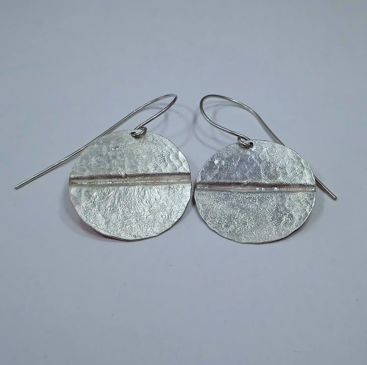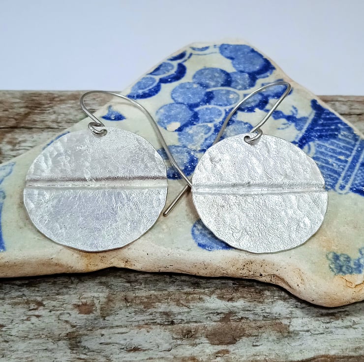 The discs measure approximately 2.6 cm across and are hung from sterling silver earring wires I have also handmade.