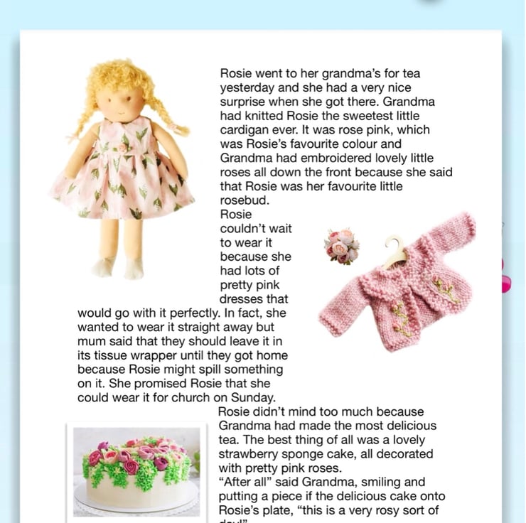 Choose an outfit for Rosie from the ones available in my shop. She will then come dressed and boxed in tissue for an extra special gift to treasure.