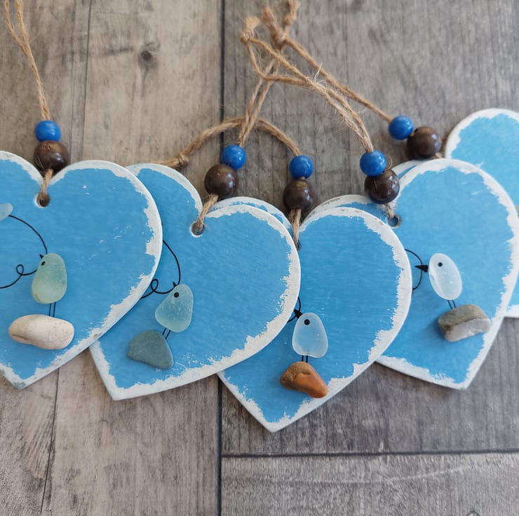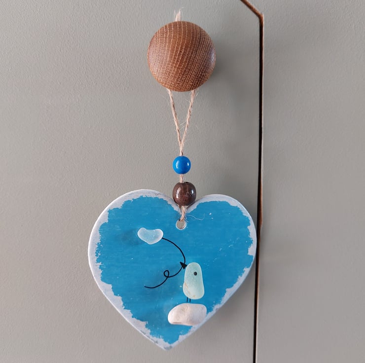 The heart measures 9cm x 9cm (drop from top to bottom is 18cm), is supplied with twine for hanging and finished with a little wooden beads.