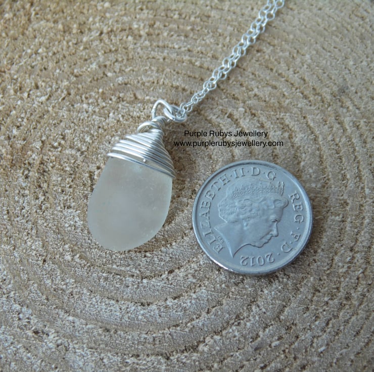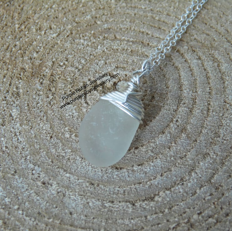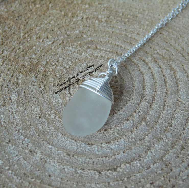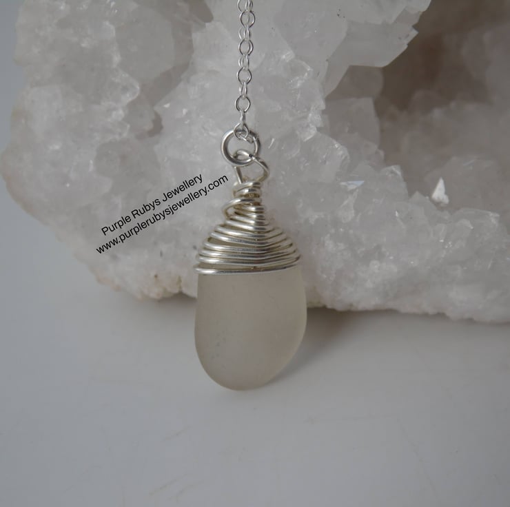 A beautiful, dainty piece of white Cornish sea glass wire wrapped with silver wire.
