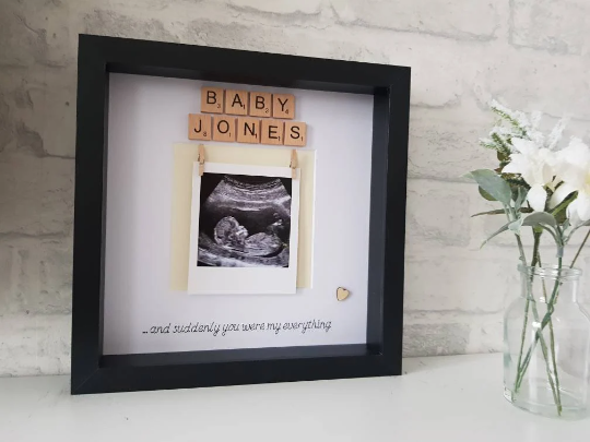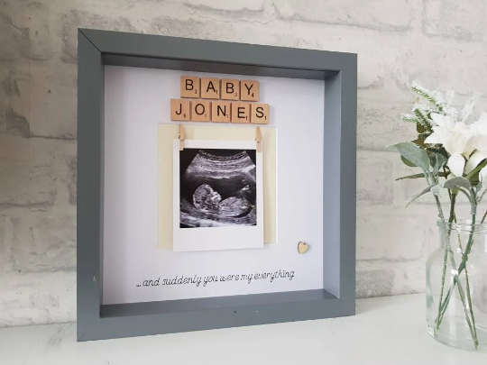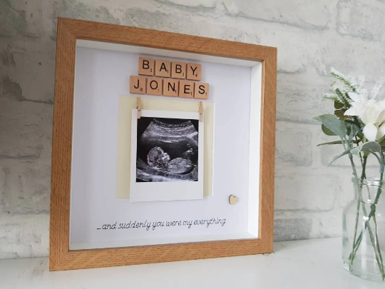 Personalised baby scan photo frame. Perfect way to display baby scan photo. Makes an adorable new baby gift.
