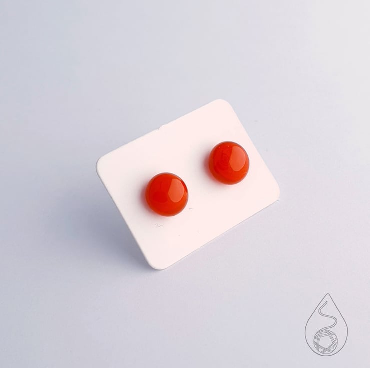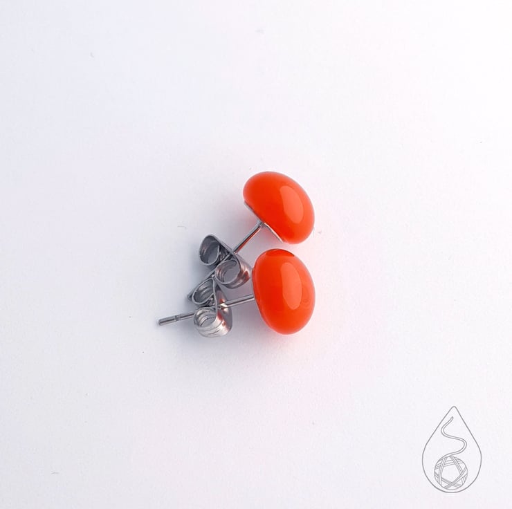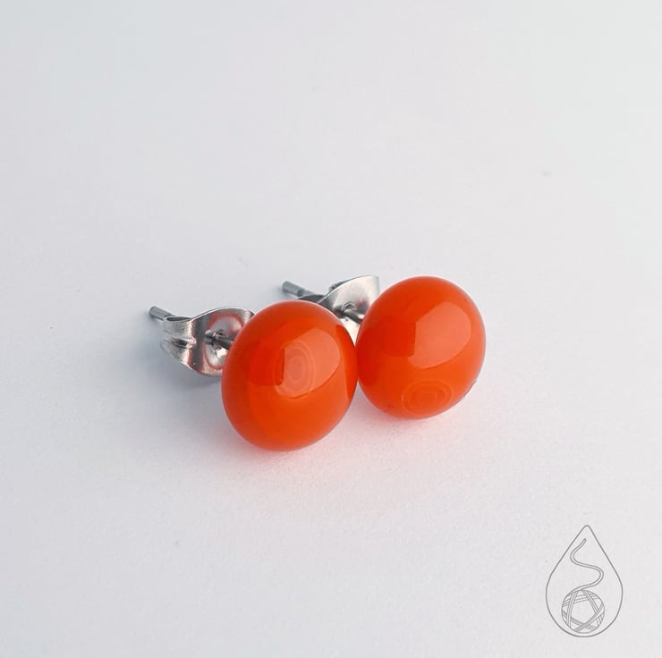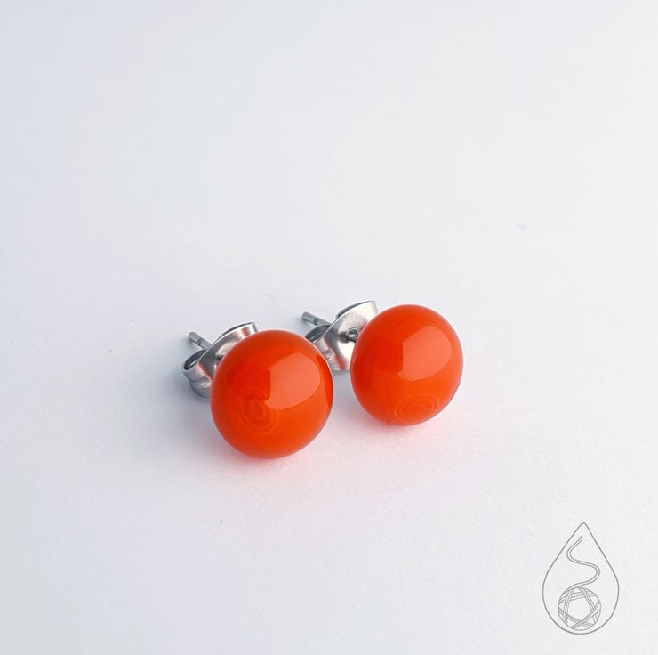 A pair of fused glass stud earrings in orange.
