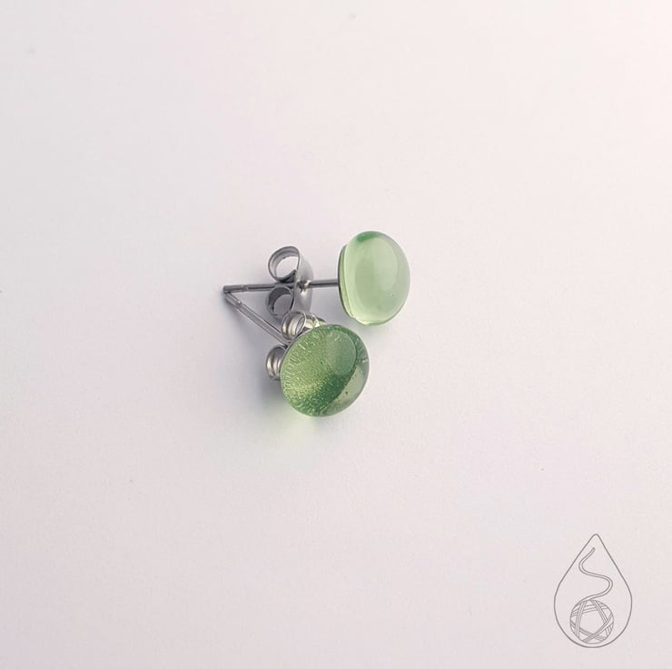 Due to the nature of working with glass, there are slight variations in each individual earring. Each pair are matched in size. The average size is about 8mm across but the smallest are about 5mm and the largest are about 1cm across. If you have a preference for a smaller or larger pair let me know and I will see what I can do.