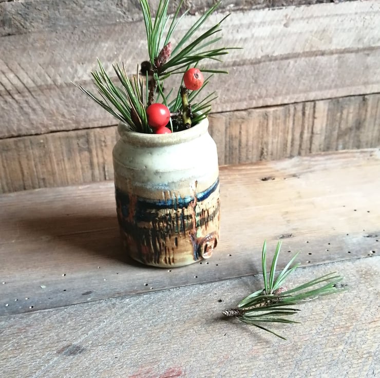 Just the right size to fit on a mantle piece or shelf, showing off a few flowers, leaves or dried seed heads from the garden, or have been found when out walking, depending on the season, but equally attractive when empty.