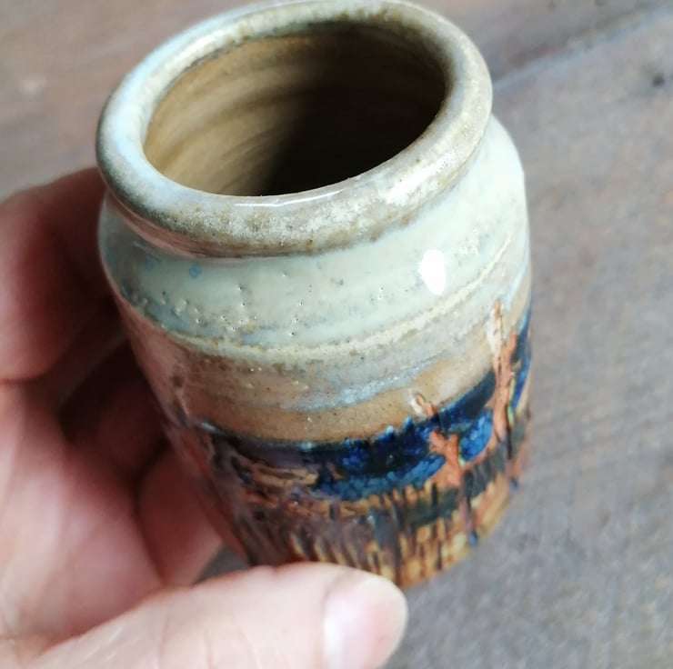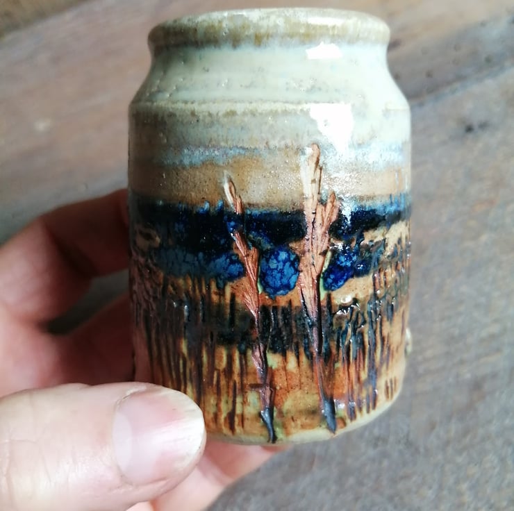These Posy Vases have been designed as if a free standing, three dimensional painting, inspired by a grassy stretch of the local landscape where I stay, evoking a feeling or memory of a walk along the Scottish coastline.