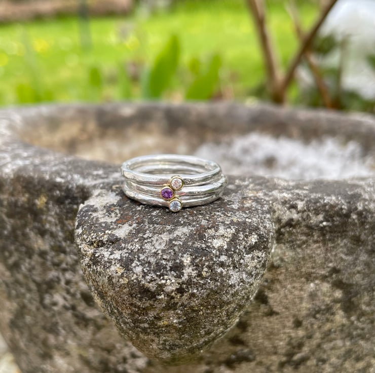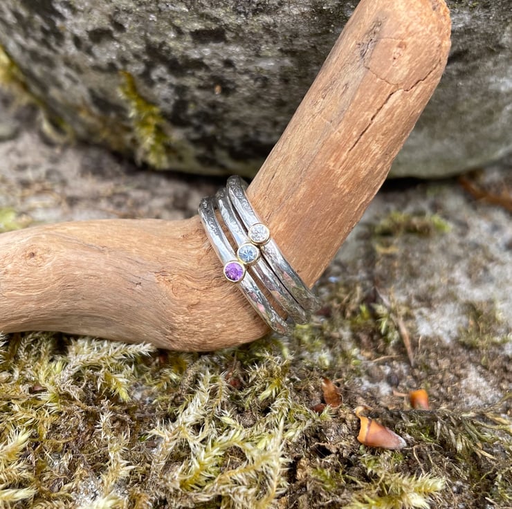The other rings pictured are set with a Ceylon sapphire and amethyst these are also available the same size.